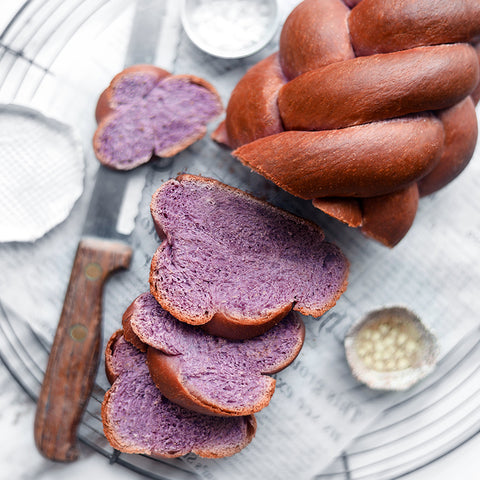 If you want to make fancy challah, here's one and only way to do — using our Suncore Foods® Ebony Carrot Powder. Crispy exterior & soft inside with beautifully braided using our powder gives this challah an elegant and vibrant purple color. This bread is perfect with butter as an appetizer or as a quick breakfast in the morning. Enjoy!