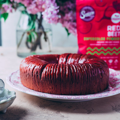 Beautiful and uniquely shaped like a wool roll bread part babka, part cake, and totally stunning. The texture is impressively soft and the vibrant red hue colored magically using Suncore Foods® Red Beet Powder. Truly simple and easy to make even when you don't have much experience making bread, tried this at home and it'll be our little secret how much you will absolutely love this. Perfect for breakfast or as a delicious in between snack.