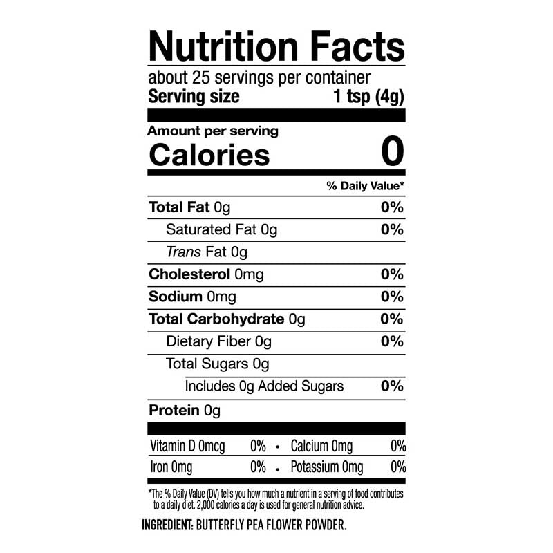 澀味、紺青色是蝶豆花的特徵,它沿著棚架、建築物蜿蜒橫跨泰國和緬甸,如此堅忍卻稍縱即逝,它只有短短二十四小時的時光。即便如此,碟豆花為地球帶來美麗的色彩,乾燥後成為南洋佳餚的天然食物顏料。花期雖短卻不具有一般染料的毒素,並且擁有多項好處,它能夠改善視力和膚質、髮質。Suncore Foods®蝶豆花粉是健康、充滿活力和視覺饗宴的超級植物,大膽加入飲料、果汁、奶昔中,創意生活,極致色彩。